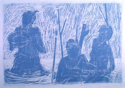 Frauen beim Waschen im Fluß.