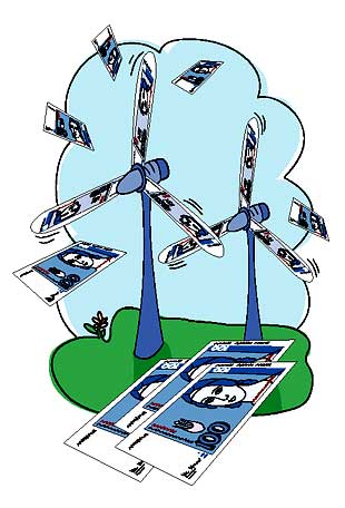 INVESTITION in ökologische Energie- erzeugung. Zum Beispiel Wasserkraft oder Solar- mobil. "Kraut & Rüben."